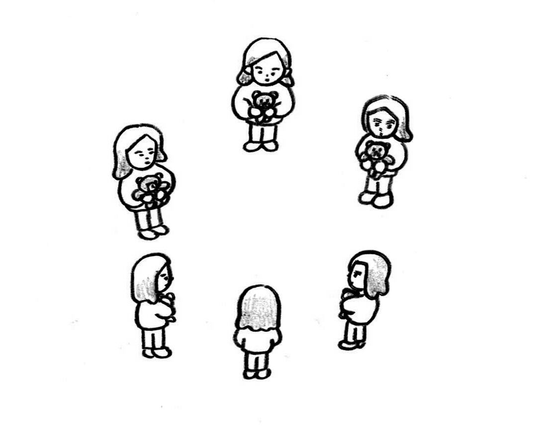 スマホサイズくらいの手製絵本です。くまがたくさん出てきてかわいいです。30ページ。
